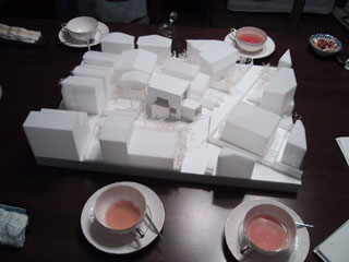 お茶を飲みながら相談して、 例のミムラ節爆裂の 各人、満足げ。 |