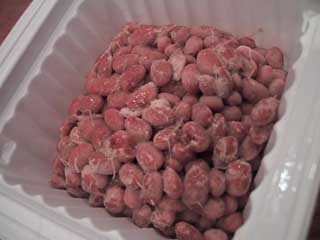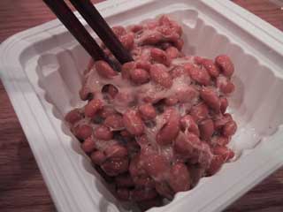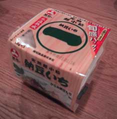 りに調味料を入れる前にかき混ぜることにより、よりいっそうの香りといい粘りが。「超小粒」といっているほどではない。笹蒲鉾と共に食すと笹蒲鉾の鯛の香りと調味料の入ったあとの心地よい香りとの調和が楽しめた。3パックで100円ほどという安価なモノだが充分に納豆魂を満足させてくれるクオリティである。20010106記。