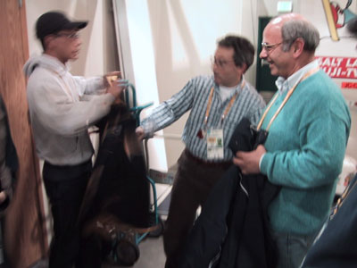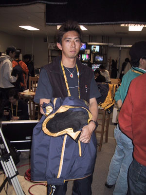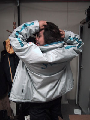 大きすぎる、と拒否されたヤマモトテツ氏。 (しかし後日、Raiのフリースをゲットすることができました。おめでとう。)